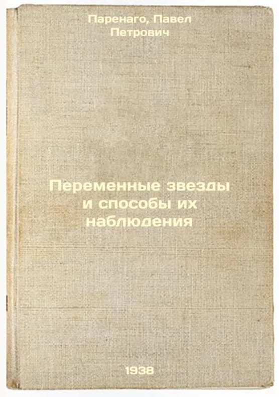 "Short description: In Russian. Parenago, Pavel Petrovich. Variable stars and how to observe them. Moscow; Leningrad: ONTI, Red. technical-theoretical liters, 1938 (K: ONTI type). Peremennye zvezdy i sposoby ikh nablyudeniya. In Russian /Variable stars and how to observe them. The image is provided for reference only. It may reflect condition of one of the available copies or only help in identifying the edition. Please feel free to contact us for a detailed description of the copies available. SKU5329775"