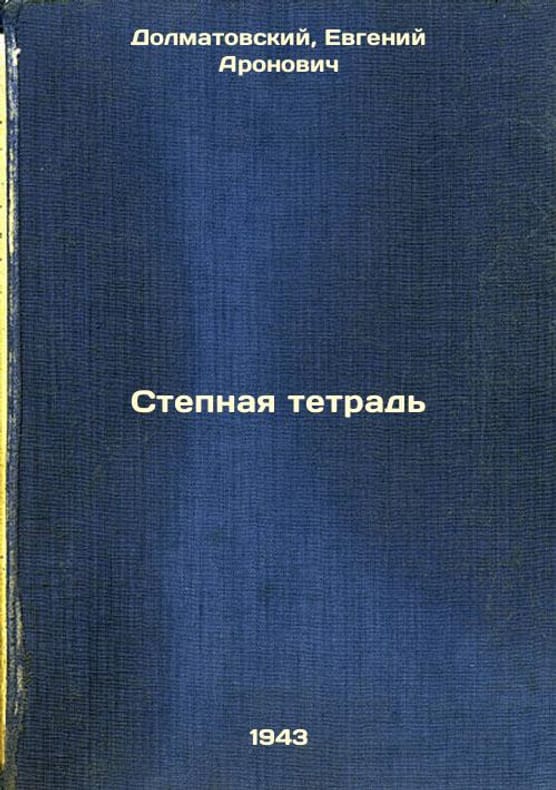Short description: In Russian. Dolmatovsky, Evgeniy Aronovich. Steppe Notebook. Moscow: The Young Guard, 1943. The image is provided for reference only. It may reflect condition of one of the available copies or only help in identifying the edition. Please feel free to contact us for a detailed description of the copies available. SKU5341188