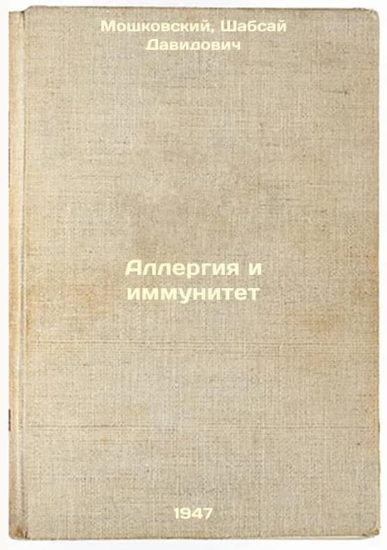 Short description: In Russian. Moshkovsky, Shabsai Davidovich. Allergy and Immunity. Moscow: Medgiz: Type 6 Polygraph Book Trust, 1947. The image is provided for reference only. It may reflect condition of one of the available copies or only help in identifying the edition. Please feel free to contact us for a detailed description of the copies available. SKU5845603