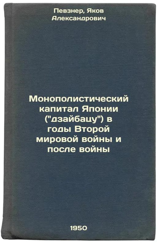 Short description: In Russian. Pevzner, Yakov Alexandrovich. Japan's monopoly capital (zaibatsu) during World War II and after the war. Leningrad, Moscow: Publishing House and Type 2. Acad. sciences of the USSR (Moscow, 1950). Monopolisticheskiy kapital Yaponii (dzaybatsu) v gody Vtoroy mirovoy voyny i posle voyny. In Russian /Japan's Monopoly Capital (Zaibatsu) during and after World War II . The image is provided for reference only. It may reflect condition of one of the available copies or only help in identifying the edition. Please feel free to contact us for a detailed description of the copies available. SKU5859761