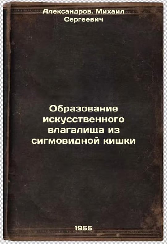 Short description: In Russian. Alexandrov, Mikhail Sergeevich. Formation of an artificial vagina from sigma intestines. Moscow: Medgiz, 1955. You are welcome to reach out to us for a detailed description of the copies currently available. Delivery of this book may take longer than usual including extended processing and pre-shipping time, no expedited shipping is available. Please advise us if you have a set date or a deadline to receive your order.SKU5861984