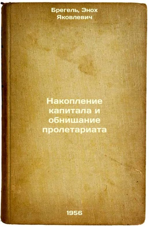 Short description: In Russian. Bregel, Enoch Yakovlevich. The accumulation of capital and the impoverishment of the proletariat. Moscow: Gopolizdat, 1956. Nakoplenie kapitala i obnishchanie proletariata. In Russian /Capital accumulation and the impoverishment of the proletariat . The image is provided for reference only. It may reflect condition of one of the available copies or only help in identifying the edition. Please feel free to contact us for a detailed description of the copies available. SKU5866116