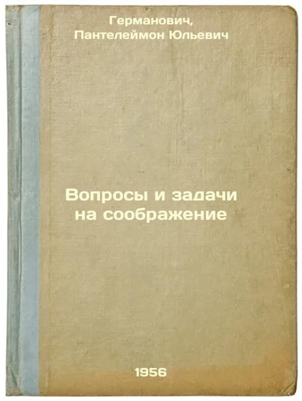 Short description: In Russian. Germanovich, Panteleimon Yulievich. Questions and tasks for consideration. Leningrad: Uchpedgiz. Leningrad detachment, 1957. Voprosy i zadachi na soobrazhenie. In Russian /Issues and challenges for consideration . The image is provided for reference only. It may reflect condition of one of the available copies or only help in identifying the edition. Please feel free to contact us for a detailed description of the copies available. SKU6081232
