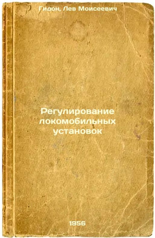 Short description: In Russian. Gidon, Lev Moiseevich. Regulation of locomobiles. Moscow: Mashgiz, 1956. Regulirovanie lokomobil'nykh ustanovok. In Russian /Regulation of Locomotive Plants . The image is provided for reference only. It may reflect condition of one of the available copies or only help in identifying the edition. Please feel free to contact us for a detailed description of the copies available. SKU5872929
