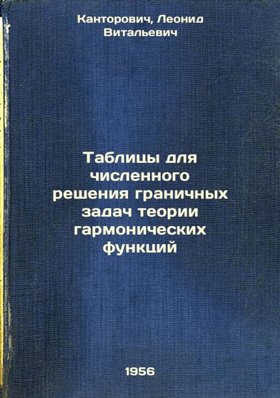 Short description: In Russian. Kantorovich, Leonid Vitalievich. Tables for numerical solution of boundary problems of the theory of harmonic functions. Moscow: Gostekhizdat, 1956. Tablitsy dlya chislennogo resheniya granichnykh zadach teorii garmonicheskikh funktsiy. In Russian /Tables for numerical solution of boundary problems of the theory of harmonic functions . The image is provided for reference only. It may reflect condition of one of the available copies or only help in identifying the edition. Please feel free to contact us for a detailed description of the copies available. SKU5883104