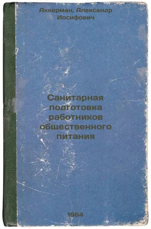 Short description: In Russian. Akkerman, Alexander Iosifovich. Sanitary Training for Catering Workers. Moscow: In-t Health Education, 1964. Sanitarnaya podgotovka rabotnikov obshchestvennogo pitaniya. In Russian /Sanitary Training for Catering Workers. The image is provided for reference only. It may reflect condition of one of the available copies or only help in identifying the edition. Please feel free to contact us for a detailed description of the copies available. SKU5926726