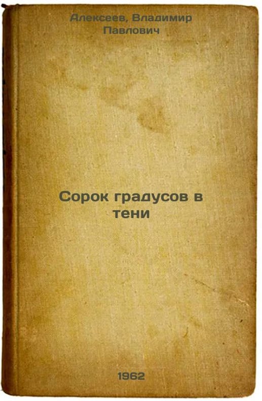 Short description: In Russian. Alekseev, Vladimir Pavlovich. Forty degrees in the shade. Moscow: Pravda, 1962. The image is provided for reference only. It may reflect condition of one of the available copies or only help in identifying the edition. Please feel free to contact us for a detailed description of the copies available. SKU5928602