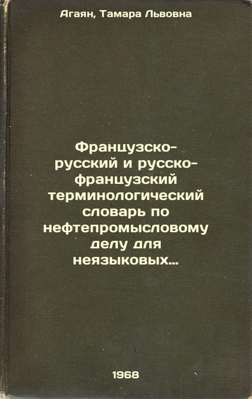 Short description: In Russian. Agayan, Tamara Lvovna. French-Russian and Russian-French Terminology Dictionary for Non-Language Universities. Moscow: Higher School, 1968. Frantsuzsko-russkiy i russko-frantsuzskiy terminologicheskiy slovar' po neftepromyslovomu delu dlya neyazykovykh vuzov. In Russian /French-Russian and Russian-French oil terminology dictionary for non-language universities . The image is provided for reference only. It may reflect condition of one of the available copies or only help in identifying the edition. Please feel free to contact us for a detailed description of the copies available. SKU5935273