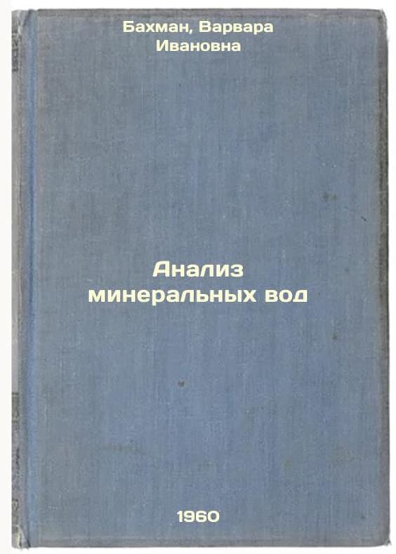 Short description: In Russian. Bakhman, Varvara Ivanovna. Analysis of mineral waters. Moscow: 1960. The image is provided for reference only. It may reflect condition of one of the available copies or only help in identifying the edition. Please feel free to contact us for a detailed description of the copies available. SKU5960963
