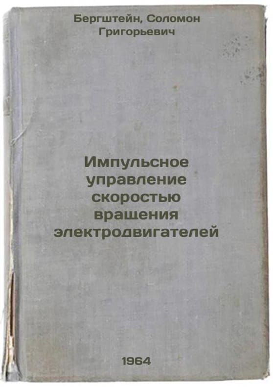 "Short description: In Russian. Bergstein, Solomon Grigorievich. Pulse control of the rotational speed of electric motors. Moscow; Leningrad: Energiya, 1964. Impul'snoe upravlenie skorost'yu vrashcheniya elektrodvigateley. In Russian /Pulse control of the rotational speed of electric motors. The image is provided for reference only. It may reflect condition of one of the available copies or only help in identifying the edition. Please feel free to contact us for a detailed description of the copies available. SKU5967707"