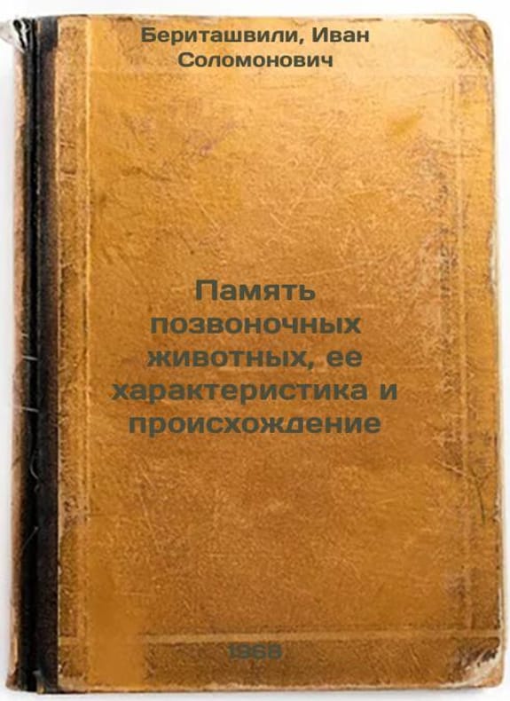 Short description: In Russian. Beritashvili, Ivan Solomonovich. Vertebrate Animal Memory, Characteristics and Origin. Tbilisi: Metsniereba, 1968. Pamyat' pozvonochnykh zhivotnykh, ee kharakteristika i proiskhozhdenie. In Russian /Vertebrate Animal Memory, Characteristics and Origin. The image is provided for reference only. It may reflect condition of one of the available copies or only help in identifying the edition. Please feel free to contact us for a detailed description of the copies available. SKU5968809
