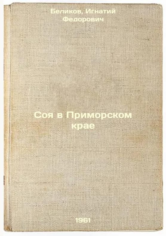 Short description: In Russian. Belikov, Ignatiy Fedorovich. Soybeans in Primorsky Krai. Vladivostok: Primorsky Book Publishing House, 1961. The image is provided for reference only. It may reflect condition of one of the available copies or only help in identifying the edition. Please feel free to contact us for a detailed description of the copies available. SKU5975599