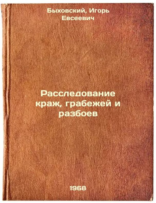 Short description: In Russian. Bykhovsky, Igor Evseevich. Investigation of Theft, Robbery and Robbery. Leningrad: 1968. Rassledovanie krazh, grabezhey i razboev. In Russian /Investigation of Theft, Robbery and Robbery . The image is provided for reference only. It may reflect condition of one of the available copies or only help in identifying the edition. Please feel free to contact us for a detailed description of the copies available. SKU5992367