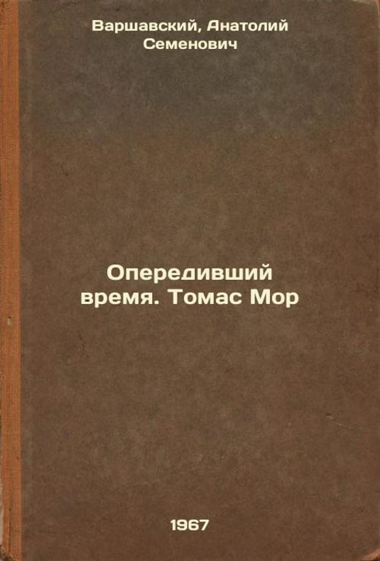 Short description: In Russian. Varshavsky, Anatoly Semenovich. The One Ahead of Time. Thomas More. Moscow: The Power Guard, 1967. Operedivshiy vremya. Tomas Mor. In Russian /Getting ahead of the time. Thomas More . The image is provided for reference only. It may reflect condition of one of the available copies or only help in identifying the edition. Please feel free to contact us for a detailed description of the copies available. SKU5996879