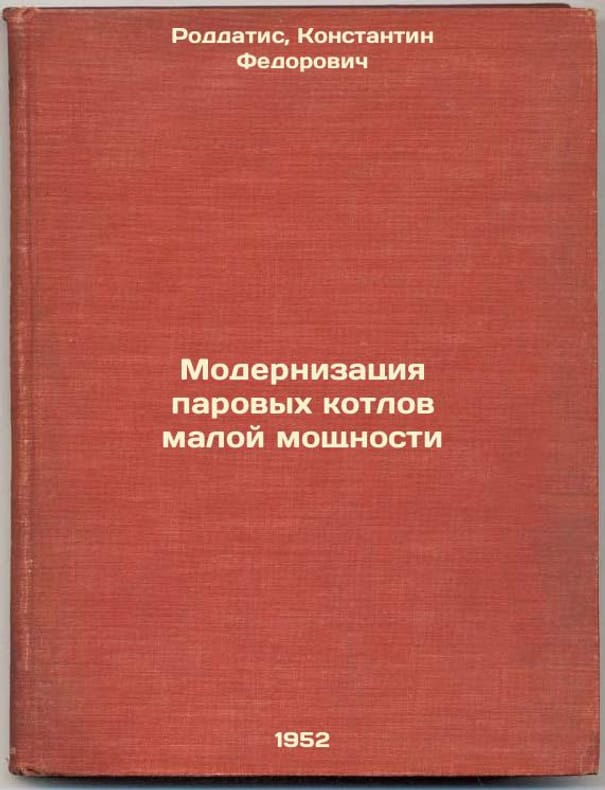 "Short description: In Russian. Roddatis, Konstantin Fedorovich. Modernization of small-capacity steam boilers. Moscow; Leningrad: Gosenergoizdat, 1952. Modernizatsiya parovykh kotlov maloy moshchnosti. In Russian /Modernization of small-capacity steam boilers . The image is provided for reference only. It may reflect condition of one of the available copies or only help in identifying the edition. Please feel free to contact us for a detailed description of the copies available. SKU6005249"