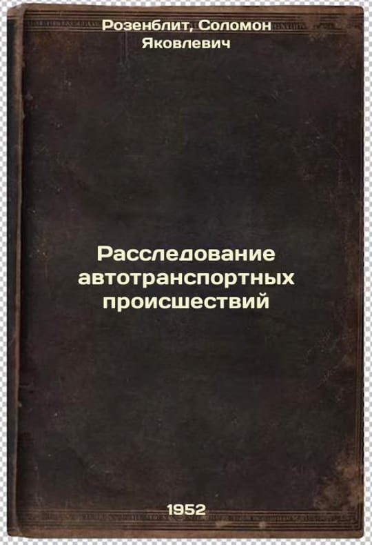 Short description: In Russian. Rosenblit, Solomon Yakovlevich. Investigation of motor vehicle accidents. Moscow: Gosurizdat, 1952. Rassledovanie avtotransportnykh proisshestviy. In Russian /Investigation of motor vehicle accidents . The image is provided for reference only. It may reflect condition of one of the available copies or only help in identifying the edition. Please feel free to contact us for a detailed description of the copies available. SKU6005745