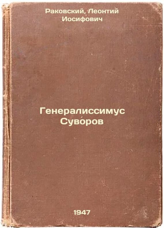 "Short description: In Russian. Rakovsky, Leonty Iosifovich. Generalissimo Suvorov. Moscow; Leningrad: Goslitizdat. The image is provided for reference only. It may reflect condition of one of the available copies or only help in identifying the edition. Please feel free to contact us for a detailed description of the copies available. SKU6013221"