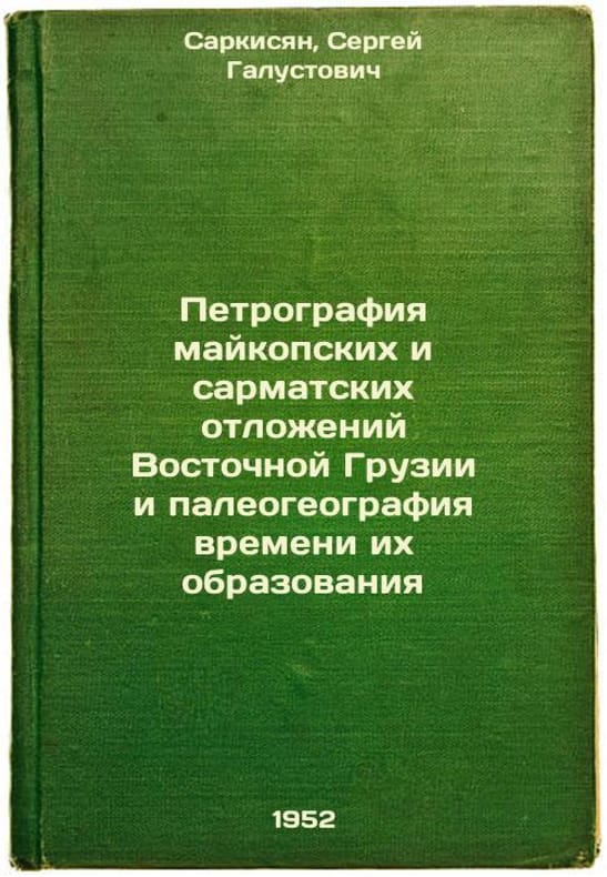 Short description: In Russian. Sargsyan, Sergey Galustovich. Petrography of the Maykop and Sarmatian deposits of Eastern Georgia and Paleogeography of the Time of Their Formation. Moscow: Publishing House of Acad. sciences of the USSR, 1952. Petrografiya maykopskikh i sarmatskikh otlozheniy Vostochnoy Gruzii i paleogeografiya vremeni ikh obrazovaniya. In Russian /Petrography of the Maykopi and Sarmatian sediments of Eastern Georgia and the paleogeography of the time of their formation . The image is provided for reference only. It may reflect condition of one of the available copies or only help in identifying the edition. Please feel free to contact us for a detailed description of the copies available. SKU6018483