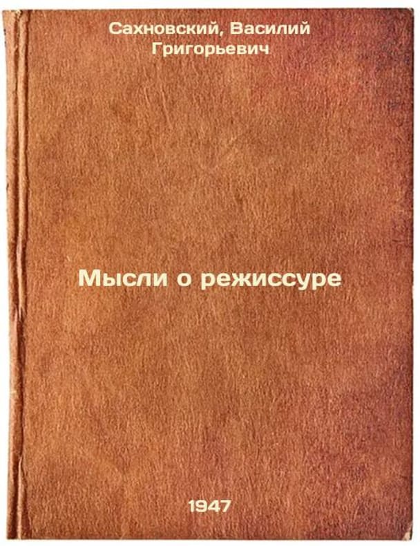 "Short description: In Russian. Sakhnovsky, Vasily Grigorievich. Thoughts on directing. Moscow; Leningrad: Art (Moscow: type. Kr. printer, 1947). The image is provided for reference only. It may reflect condition of one of the available copies or only help in identifying the edition. Please feel free to contact us for a detailed description of the copies available. SKU6018806"