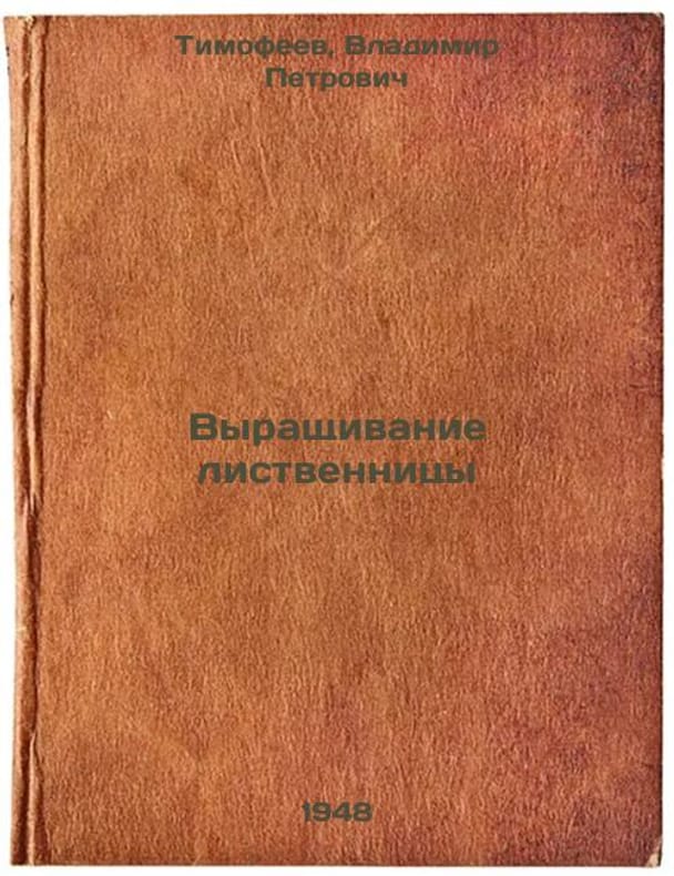 "Short description: In Russian. Timofeev, Vladimir Petrovich. Growing larch. Moscow; Leningrad: Goslesbumizdat (L: photoitpolit. GLTI, 1948). The image is provided for reference only. It may reflect condition of one of the available copies or only help in identifying the edition. Please feel free to contact us for a detailed description of the copies available. SKU6037668"