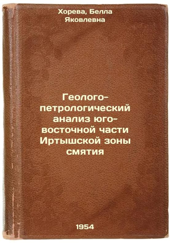 Short description: In Russian. Khoreva, Bella Yakovlevna. Geological and petrological analysis of the southeastern part of the Irtysh crumbling zone. Moscow: State Geological Tekhizdat, 1954. Geologo-petrologicheskiy analiz yugo-vostochnoy chasti Irtyshskoy zony smyatiya. In Russian /Geological and petrological analysis of the southeast part of the Irtysh crumbling zone . The image is provided for reference only. It may reflect condition of one of the available copies or only help in identifying the edition. Please feel free to contact us for a detailed description of the copies available. SKU6047262
