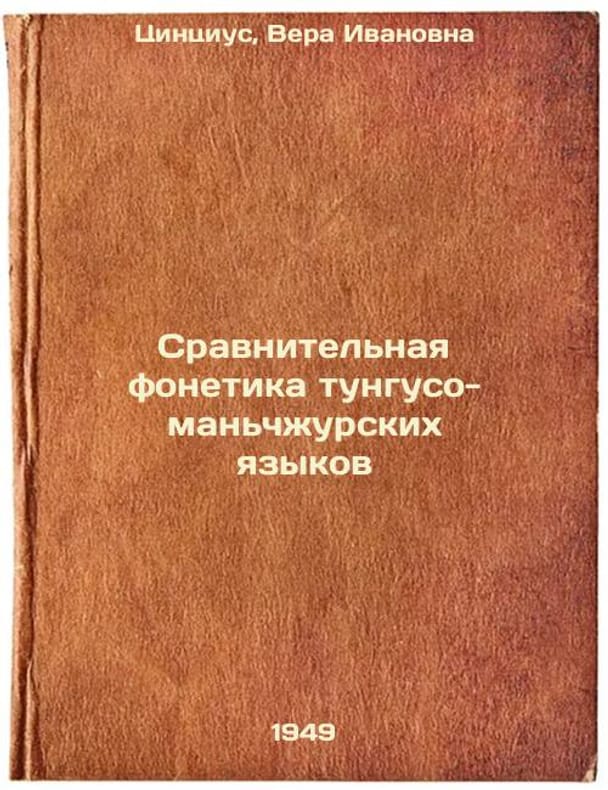 Short description: In Russian. Tsintsius, Vera Ivanovna. Comparative phonetics of Tunguso-Manchurian languages. Leningrad: Leningrad Department of Uchpedgiz: type. # 3 Publishing and Printing Department of the Executive Committee of the Leningrad City Council, 1949. Sravnitel'naya fonetika tunguso-man'chzhurskikh yazykov. In Russian /Comparative Phonetics of Tunguso-Manchu Languages . The image is provided for reference only. It may reflect condition of one of the available copies or only help in identifying the edition. Please feel free to contact us for a detailed description of the copies available. SKU6049228