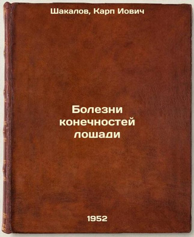 "Short description: In Russian. Shakalov, Karp Iovich. Diseases of horse limbs. Moscow; Leningrad: Selkhozgiz, 1952. The image is provided for reference only. It may reflect condition of one of the available copies or only help in identifying the edition. Please feel free to contact us for a detailed description of the copies available. SKU6052738"