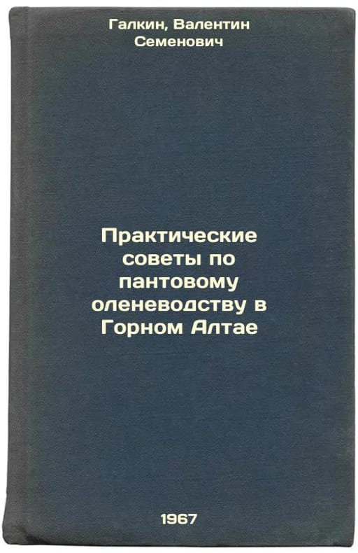 Short description: In Russian. Galkin, Valentin Semenovich. Practical tips for pantomime reindeer husbandry in Mountain Altai. Gorno-Altaisk: Altai edition: Gorno-Altai edition, 1967. Prakticheskie sovety po pantovomu olenevodstvu v Gornom Altae. In Russian /Practical tips for pant reindeer herding in the Altai Mountains . The image is provided for reference only. It may reflect condition of one of the available copies or only help in identifying the edition. Please feel free to contact us for a detailed description of the copies available. SKU6068017