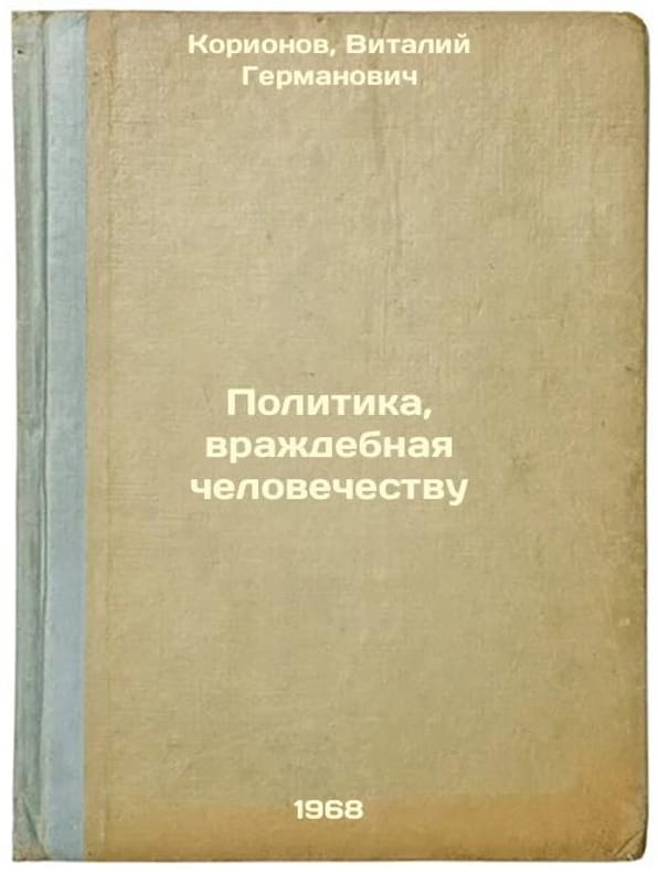 Short description: In Russian. Korionov, Vitaly Germanovich. Politics hostile to humanity. Moscow: Politizdat, 1968. The image is provided for reference only. It may reflect condition of one of the available copies or only help in identifying the edition. Please feel free to contact us for a detailed description of the copies available. SKU6240340
