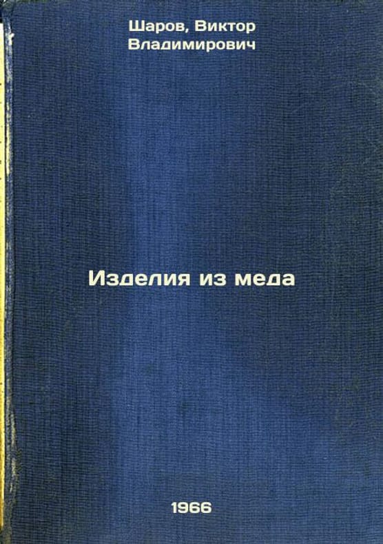 Short description: In Russian. Sharov, Viktor Vladimirovich. Products made of honey. Moscow: Food Industry, 1966. The image is provided for reference only. It may reflect condition of one of the available copies or only help in identifying the edition. Please feel free to contact us for a detailed description of the copies available. SKU6254526