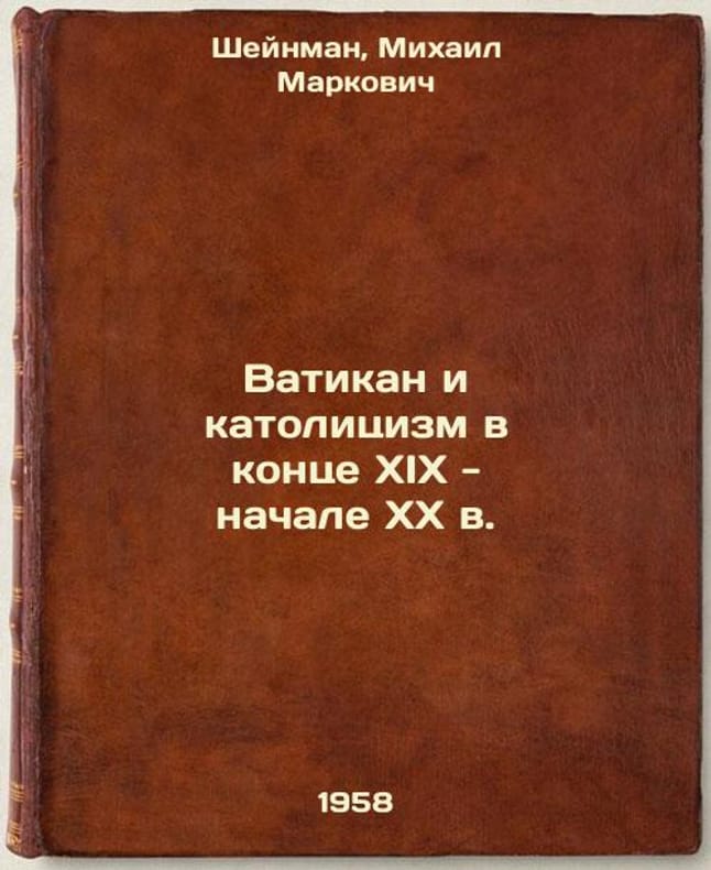 Short description: In Russian. Sheinman, Mikhail Markovich. Vatican and Catholicism in the late nineteenth and early twentieth centuries. Moscow: Publishing House of Acad. sciences of the USSR, 1958. Vatikan i katolitsizm v kontse XIX - nachale XX v. In Russian /Vatican and Catholicism in the late nineteenth and early twentieth centuries . The image is provided for reference only. It may reflect condition of one of the available copies or only help in identifying the edition. Please feel free to contact us for a detailed description of the copies available. SKU6257358