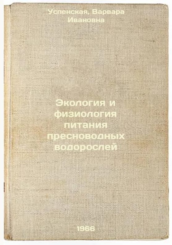 Short description: In Russian. Uspenskaya, Varvara Ivanovna. Ecology and Physiology of Freshwater Algae Nutrition. Moscow: Publishing House of Moscow, 1966. Ekologiya i fiziologiya pitaniya presnovodnykh vodorosley. In Russian /Ecology and nutritional physiology of freshwater algae . The image is provided for reference only. It may reflect condition of one of the available copies or only help in identifying the edition. Please feel free to contact us for a detailed description of the copies available. SKU6278225