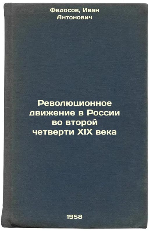 Short description: In Russian. Fedosov, Ivan Antonovich. The Revolutionary Movement in Russia in the Second Quarter of the 19th Century. Moscow: Societies, 1958. Revolyutsionnoe dvizhenie v Rossii vo vtoroy chetverti XIX veka. In Russian /Revolutionary Movement in Russia in the Second Quarter of the 19th Century . The image is provided for reference only. It may reflect condition of one of the available copies or only help in identifying the edition. Please feel free to contact us for a detailed description of the copies available. SKU6283220