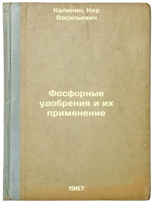 Short description: In Russian. Kalinin, Kir Vasilievich. Phosphorus fertilizers and their application. Moscow: Kolos, 1967. Fosfornye udobreniya i ikh primenenie. In Russian /Phosphorus fertilizers and their application . The image is provided for reference only. It may reflect condition of one of the available copies or only help in identifying the edition. Please feel free to contact us for a detailed description of the copies available. SKU6288910