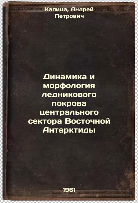 Short description: In Russian. Kapitsa, Andrey Petrovich. Dynamics and morphology of the Ice Sheet in the Central Sector of East Antarctica. Leningrad: Sea Transport, 1961. Dinamika i morfologiya lednikovogo pokrova tsentral'nogo sektora Vostochnoy Antarktidy. In Russian /Ice Sheet Dynamics and Morphology in the Central Sector of East Antarctica . The image is provided for reference only. It may reflect condition of one of the available copies or only help in identifying the edition. Please feel free to contact us for a detailed description of the copies available. SKU6291863