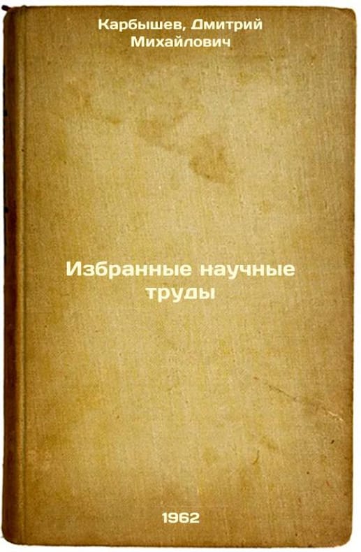 Short description: In Russian. Karbyshev, Dmitry Mikhailovich. Selected Scientific Works. Moscow: Voenizdat, 1962. The image is provided for reference only. It may reflect condition of one of the available copies or only help in identifying the edition. Please feel free to contact us for a detailed description of the copies available. SKU6293571