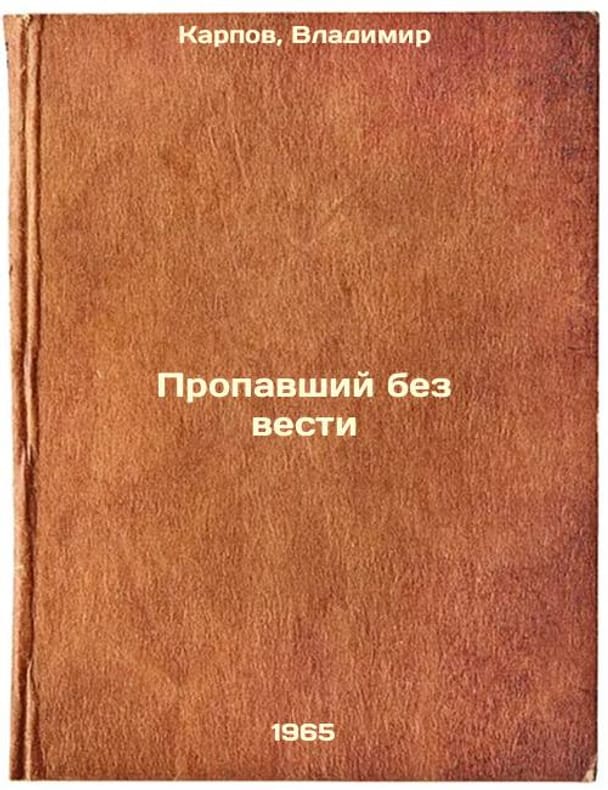 Short description: In Russian. Karpov, Vladimir. Missing. Tashkent: United Publishing House of the Central Committee of the Communist Party of Uzbekistan, 1965. The image is provided for reference only. It may reflect condition of one of the available copies or only help in identifying the edition. Please feel free to contact us for a detailed description of the copies available. SKU6295122