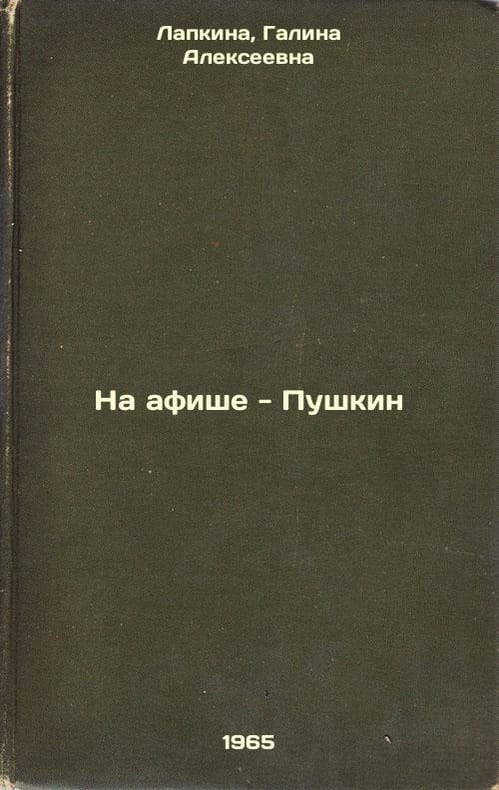 "Short description: In Russian. Lapkina, Galina Alekseevna. On the poster - Pushkin. Leningrad; Moscow: Art, 1965. The image is provided for reference only. It may reflect condition of one of the available copies or only help in identifying the edition. Please feel free to contact us for a detailed description of the copies available. SKU6323502"