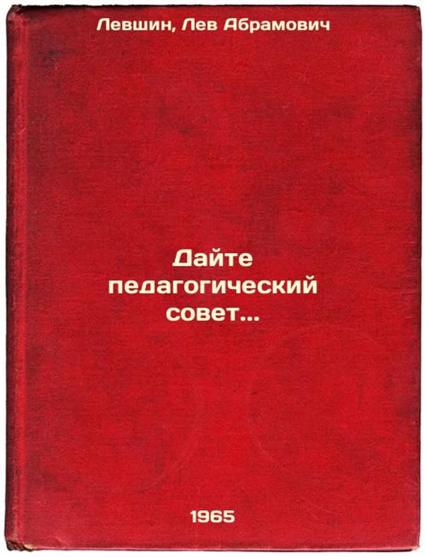 Short description: In Russian. Levshin, Lev Abramovich. Give pedagogical advice. Moscow: Politizdat, 1965. Please feel free to contact us for a detailed description of the copies available. SKU6328516