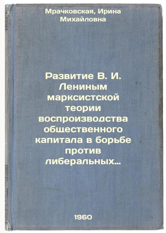 Short description: In Russian. Mrachkovskaya, Irina Mikhailovna. V. I. Lenin's development of the Marxist theory of the reproduction of social capital in the struggle against liberal nationalists and legal Marxists. Moscow: Sotsakgiz, 1960. Razvitie V. I. Leninym marksistskoy teorii vosproizvodstva obshchestvennogo kapitala v bor'be protiv liberal'nykh narodnikov i legal'nykh marksistov. In Russian /V. I. Lenin's development of the Marxist theory of the reproduction of social capital in the struggle against liberal people and legal Marxists . The image is provided for reference only. It may reflect condition of one of the available copies or only help in identifying the edition. Please feel free to contact us for a detailed description of the copies available. SKU6359446