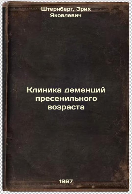 Short description: In Russian. Sternberg, Erich Yakovlevich. Dementia Clinic of Presenile Age. Leningrad: Medicine. Leningrad Department, 1967. Please feel free to contact us for a detailed description of the copies available. SKU6365786