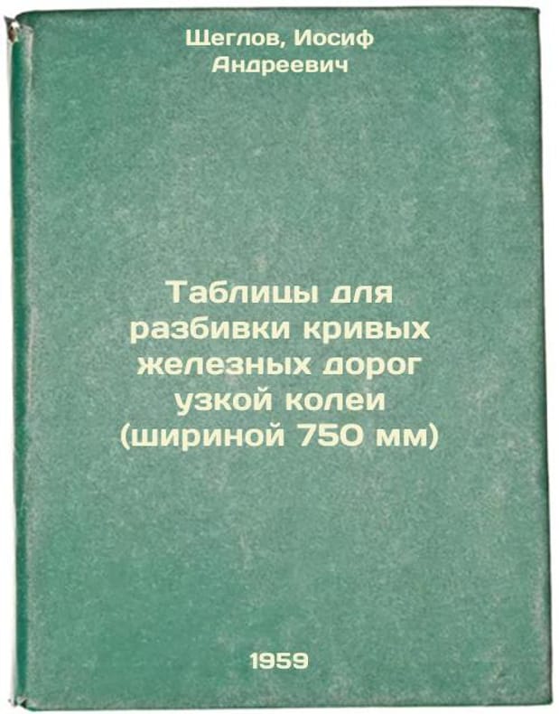 "Short description: In Russian. Shcheglov, Joseph Andreevich. Tables for breaking down the curves of narrow gauge railways (750 mm wide). Moscow; Leningrad: Goslesbumiszdat, 1959. Tablitsy dlya razbivki krivykh zheleznykh dorog uzkoy kolei (shirinoy 750 mm). In Russian /Tables for breaking down narrow gauge railway curves (750 mm wide) . The image is provided for reference only. It may reflect condition of one of the available copies or only help in identifying the edition. Please feel free to contact us for a detailed description of the copies available. SKU6370022"