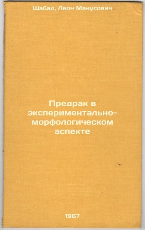 Short description: In Russian. Shabad, Leon Manusovich. Pre-cancer in the experimental-morphological aspect. Moscow: Medicine, 1967. Predrak v eksperimental'no-morfologicheskom aspekte. In Russian /Pre-cancer in the experimental-morphological aspect . The image is provided for reference only. It may reflect condition of one of the available copies or only help in identifying the edition. Please feel free to contact us for a detailed description of the copies available. SKU6370533