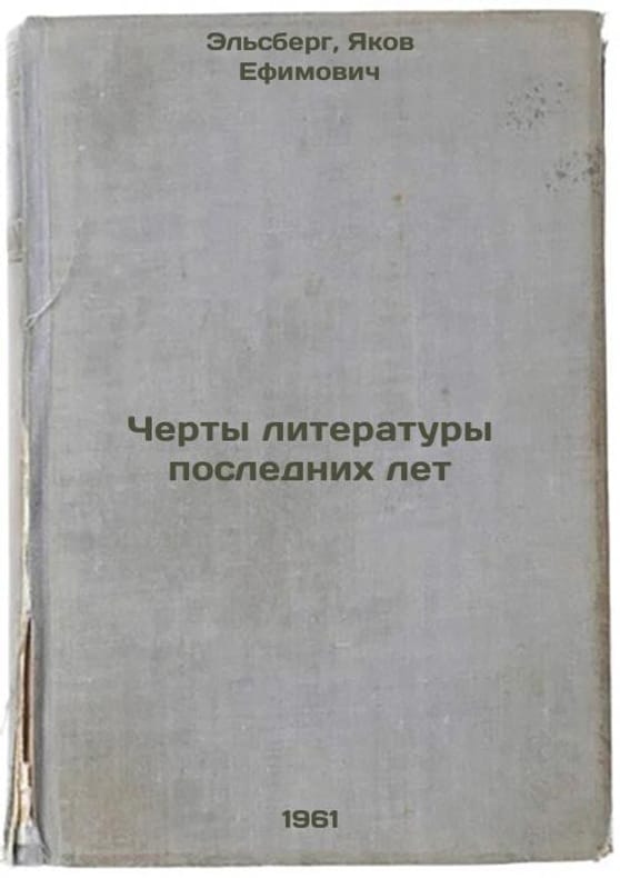 Short description: In Russian. Elsberg, Yakov Efimovich. Recent Literature Features. Moscow: Soviet writer, 1961. The image is provided for reference only. It may reflect condition of one of the available copies or only help in identifying the edition. Please feel free to contact us for a detailed description of the copies available. SKU6373870