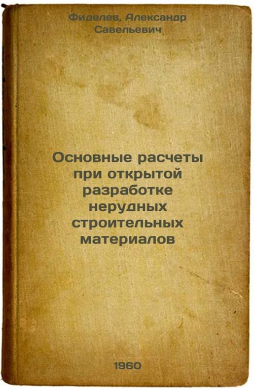 Short description: In Russian. Fidelev, Alexander Savelievich. Basic calculations for open-pit mining of non-metallic construction materials. Moscow: Gosstroyizdat, 1960. Osnovnye raschety pri otkrytoy razrabotke nerudnykh stroitel'nykh materialov. In Russian /Basic calculations for open-pit mining of non-metallic construction materials. The image is provided for reference only. It may reflect condition of one of the available copies or only help in identifying the edition. Please feel free to contact us for a detailed description of the copies available. SKU6379893