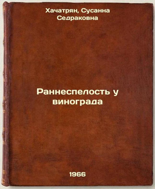 Short description: In Russian. Khachatryan, Susanna Sedrakovna. Early Ripeness at the Grapes. Yerevan: Ayastan, 1966. The image is provided for reference only. It may reflect condition of one of the available copies or only help in identifying the edition. Please feel free to contact us for a detailed description of the copies available. SKU6382994