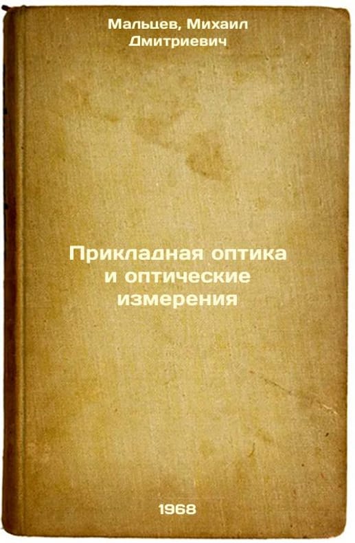 Short description: In Russian. Maltsev, Mikhail Dmitrievich. Applied Optics and Optical Measurements. Moscow: Mechanical Engineering, 1968. Prikladnaya optika i opticheskie izmereniya. In Russian /Applied Optics and Optical Measurements . The image is provided for reference only. It may reflect condition of one of the available copies or only help in identifying the edition. Please feel free to contact us for a detailed description of the copies available. SKU6397209