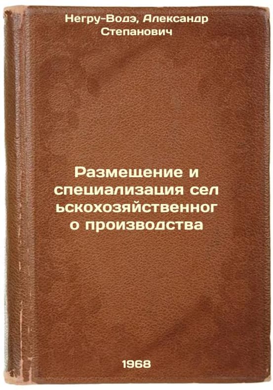 Short description: In Russian. Negru-Vode, Alexander Stepanovich. Placement and specialization of agricultural production. Moscow: Kolos, 1968. Razmeshchenie i spetsializatsiya sel'skokhozyaystvennogo proizvodstva. In Russian /Placement and specialization of agricultural production . The image is provided for reference only. It may reflect condition of one of the available copies or only help in identifying the edition. Please feel free to contact us for a detailed description of the copies available. SKU6425834