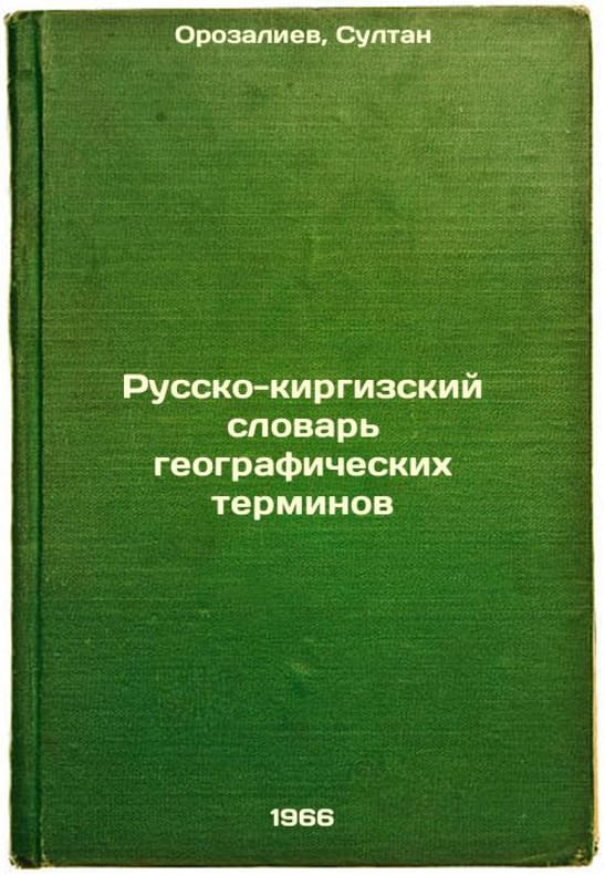 Short description: In Russian. Orozaliev, Sultan. Russian-Kyrgyz Dictionary of Geographical Terms. Frunze: 1966. Russko-kirgizskiy slovar' geograficheskikh terminov. In Russian /Russian-Kyrgyz dictionary of geographical terms . The image is provided for reference only. It may reflect condition of one of the available copies or only help in identifying the edition. Please feel free to contact us for a detailed description of the copies available. SKU6441156