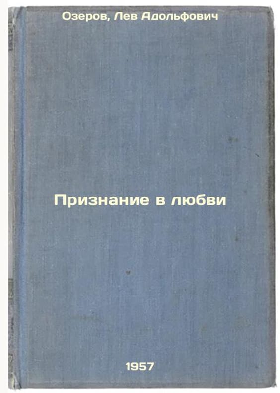 Short description: In Russian. Ozerov, Lev Adolfovich. A declaration of love. Moscow: Soviet writer, 1957. The image is provided for reference only. It may reflect condition of one of the available copies or only help in identifying the edition. Please feel free to contact us for a detailed description of the copies available. SKU6448283